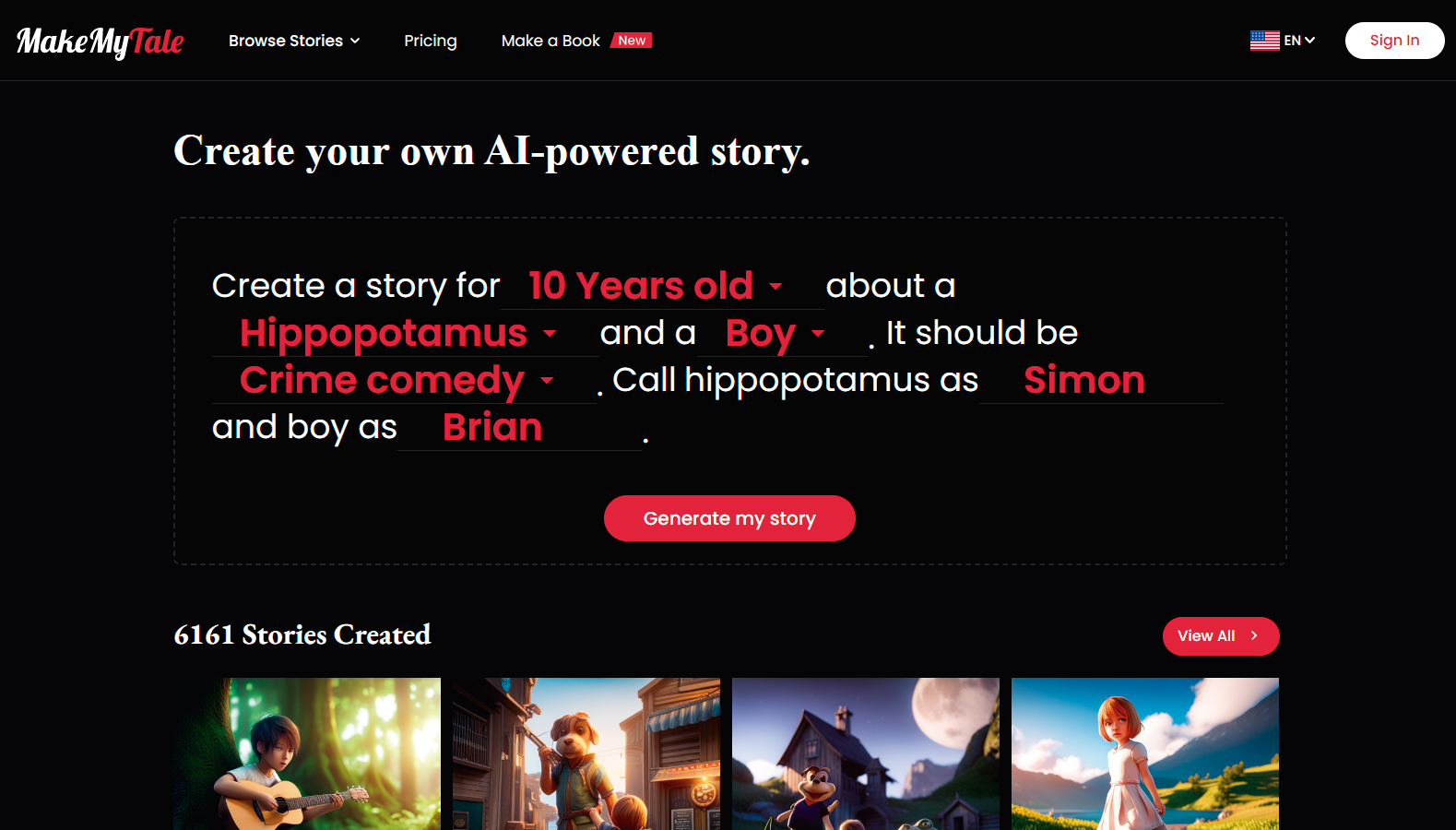 MakeMyTale ofrece a tus hijos una amplia variedad de historias para explorar y disfrutar.