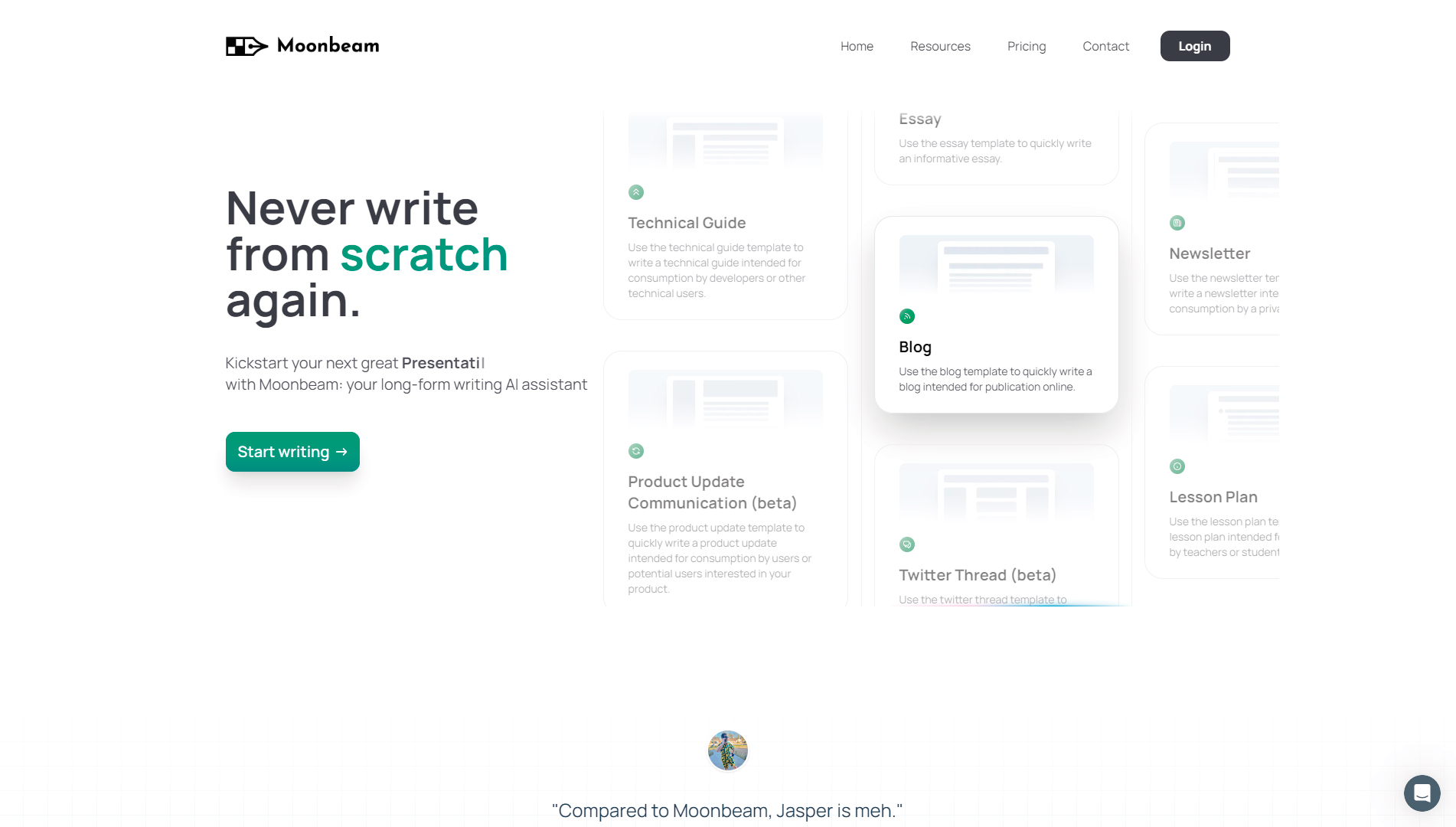 Moonbeam es un asistente de escritura de formato largo impulsado por IA que se destaca por su capacidad para generar contenido extenso con facilidad y eficiencia.